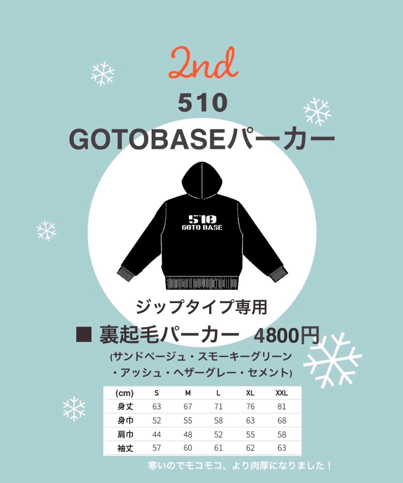 510GOTOBASEシリーズに、2番目の冬用パーカーが登場!